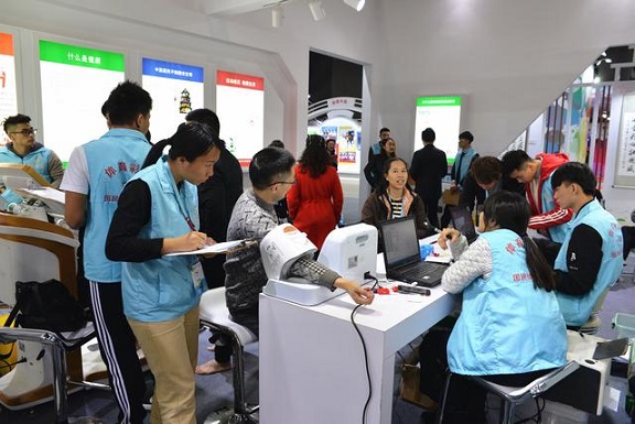 展会期间,位于保利世贸博览馆1号馆的中国体育彩票展位始终热闹非凡,分为体彩展示区、体质监测区、游戏互动区三个区域。展位宣传内容以公益为主题,突出展现了体彩公益金的筹集与使用情况,让参展观众了解体彩公益金支持社会事业取得的成绩。