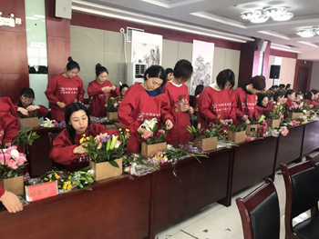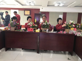 专业插花培训老师讲解插花技巧并进行现场实操练习。20名体彩“女神”纷纷对自治区体育局开展的庆“三八妇女节”主题活动表示赞许,并向众体彩“男神”分享今日收获。