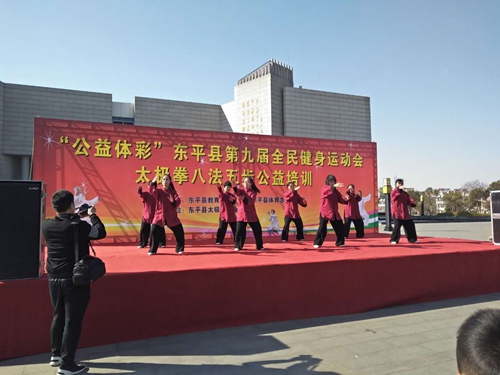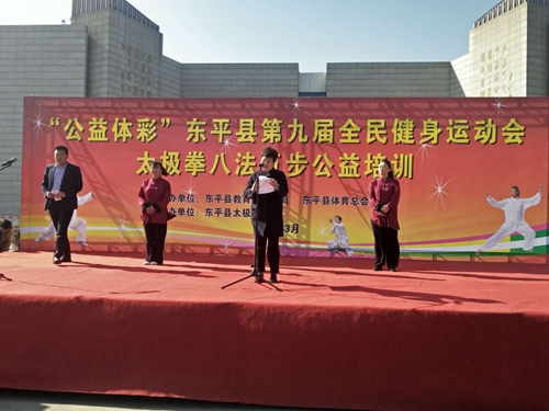3月23日上午,“公益体彩”东平县第九届全民健身运动会太极拳项目公益培训在县博物馆广场举行,东平县200余名太极健身爱好者参与其中。