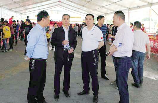 江西省体育彩票管理中心主任何东昌(左三)在活动现场指导工作
