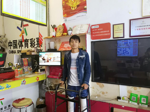 2013年6月他在中宁县新堡镇街道申请的体育彩票网点经审批,正式开始销售。他说,那一刻,是他人生的转折点,有了体育彩票销售站后,他便有了寄托,有了希望,有了梦想,有了积极向上的动力,终于,他有了人生第一份收入。