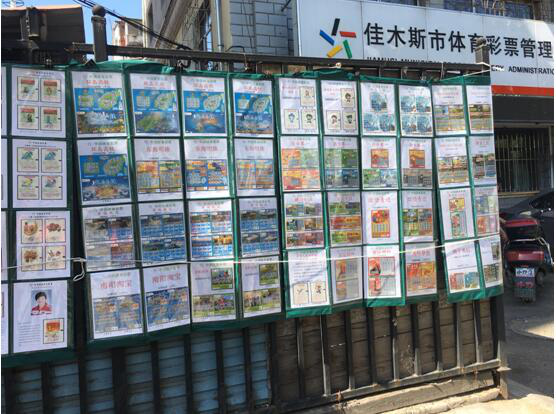 5月24日,佳木斯市体彩中心门前迎来了众多体彩爱好者。他们把收集的体彩打印纸、体彩即开票等等,制作成精美的图片悬挂在佳木斯市体彩中心门前进行展览,有明星签字的打印纸、有奥运会期间发行的即开型彩票等等。就这一幅幅带有体彩logo的图片引来了许多路过的行人驻足欣赏。