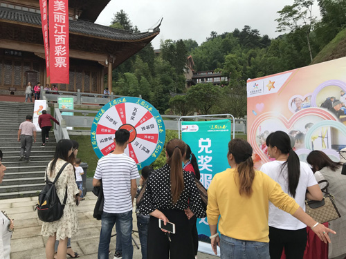 现场江西体彩还开展了精彩纷呈的互动活动,通过与游客近距离接触,扩大体育彩票宣传覆盖面,提升购彩体验。凡刮出“羊狮慕”字样的购彩者将获赠景区门票一张,吸引了诸多游客驻足,购彩抽奖大转盘旁围拢了许多群众。