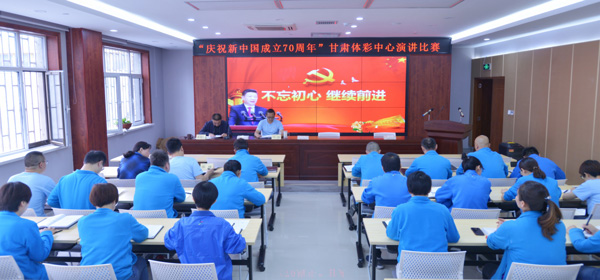 为深入学习贯彻习近平新时代中国特色社会主义思想和党的十九大精神,庆祝新中国成立70周年,弘扬五四精神,展现当代新青年青春风采,甘肃省体彩中心党支部结合“不忘初心、牢记使命”主题教育,于2019年 5月31日上午,在省中心三楼会议室,组织开展了主题为“礼赞新中国 奋进新时代”的演讲比赛。省中心领导及全体职工参加了本次比赛。