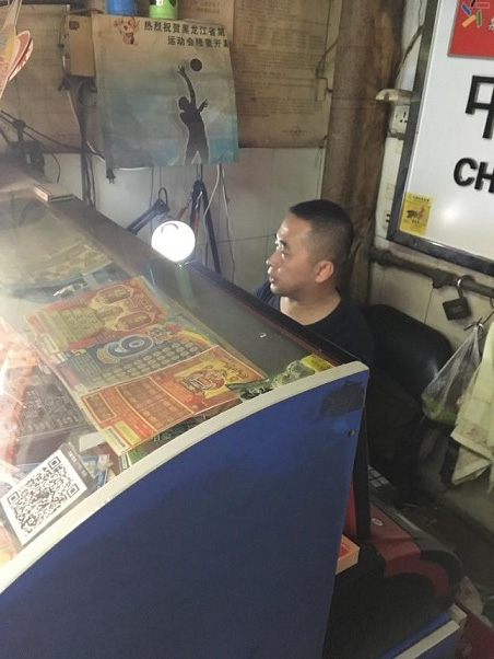 现年51岁的黑龙江省佳木斯市黄姓利经营体彩店已有17年,从小患有侏儒症的他,身高仅有1米。