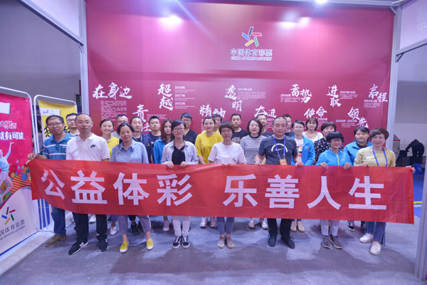 6月14日下午,省体彩中心党支部组织全体职工参与了体博会现场活动,为参展现场的观众解读体彩知识、派发公益传单。在体彩展位前,体彩工作人员手持醒目的“公益体彩 乐善人生”的公益条幅,再次将现场观众的目光聚焦过来。
