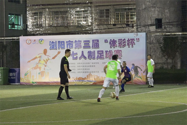 6月20日晚,浏阳市第三届“体彩杯”七人制足球赛决赛在绿茵阳光足球场打响。本次赛事由浏阳市体育运动管理局主办、浏阳市足球协会承办,于5月20日开幕。比赛设置了机关单位组和俱乐部组,共有27支队伍参加比赛,400余名队员进行了为期1个月、60场次的激烈角逐,争夺冠军荣耀。