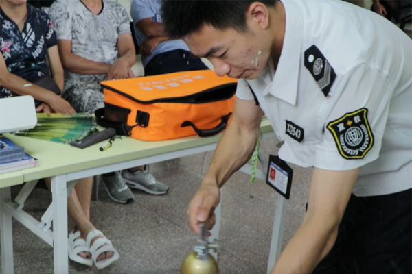 与会人员认真学习了消防安全知识,并在教官的指导下,练习了灭火器的使用方法。