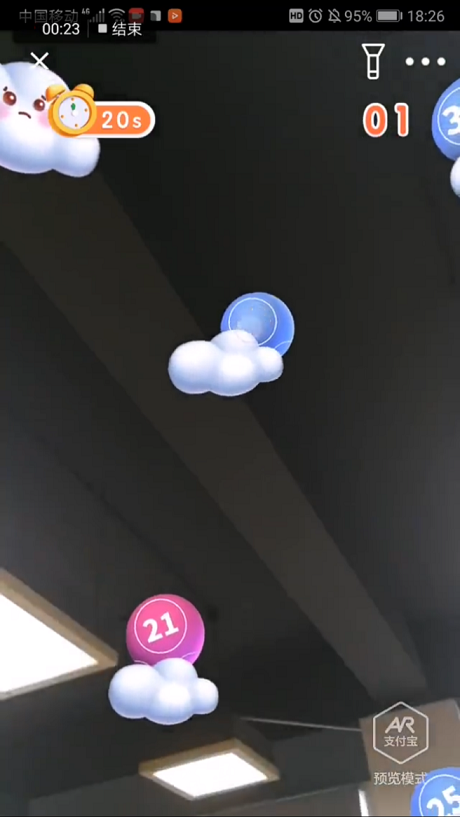 在AR游戏场景中,点击云彩背后隐藏的大乐透小球就可以累加积分参与抽奖。每天都有大量奖品发放,看看你能抽到什么惊喜?