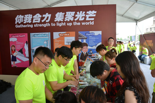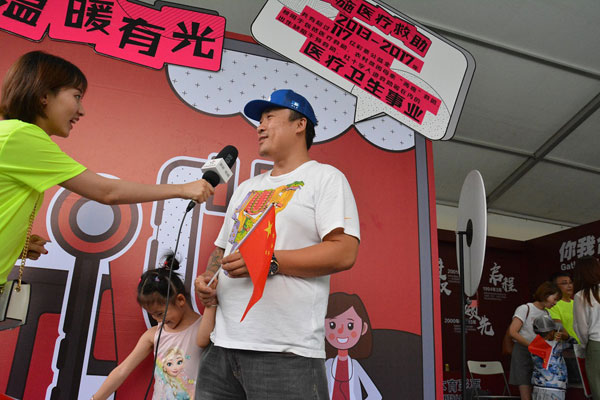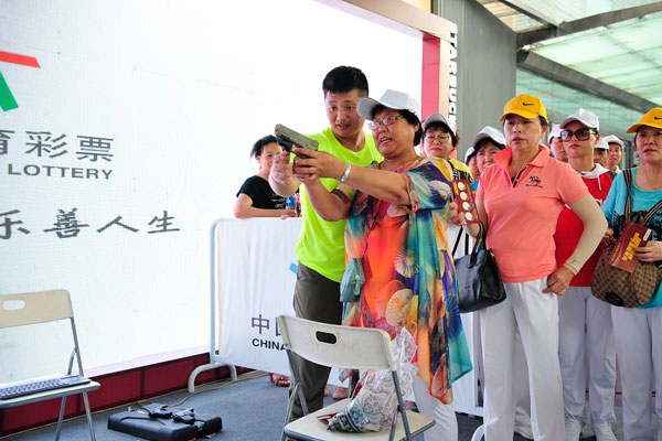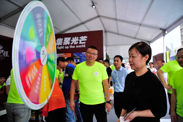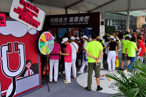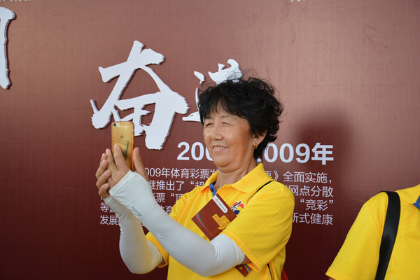 大家最热衷的游戏就是通关打卡4个项目,领取消暑纪念品。这4个项目的第一项就是与25周年主题墙合影转发朋友圈,虽然现场人很多,但在体彩志愿者的引领下,活动进行得平稳有序。