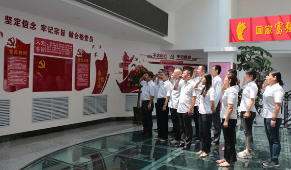 参观八女投江纪念馆过程中,省体彩中心党支部副书记、副主任何昱带领党员、面对党旗、举起右拳,重温了入党誓词。