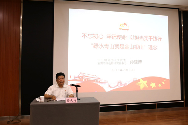 7月11日,十三届全国人大代表、原山林场党委书记孙建博受邀为山东体彩领导干部培训班学员作了题为《不忘初心,牢记使命,以担当实干践行“绿水青山就是金山银山”理念》的授课。