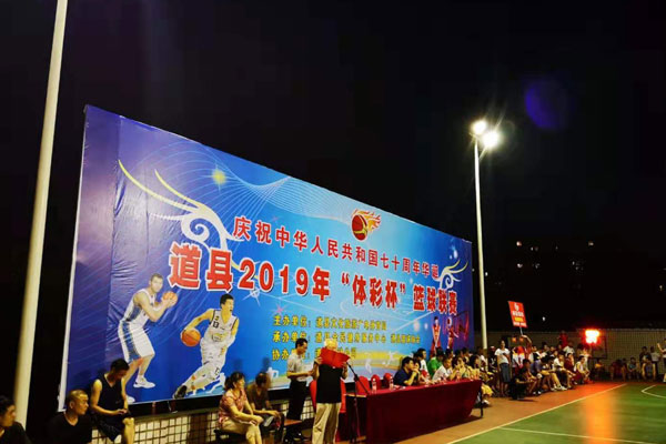 7月21日,道县2019年“体彩杯”篮球联赛在道县道州北路移动公司灯光球场隆重开幕。开幕式后,顺达汽贸队与辣子队,周大生珠宝队与旋风队分别进行了精彩的对决。