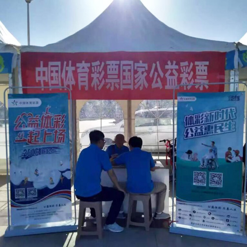 7月26日,第十八届环青海湖国际公路自行车赛第12赛段宁夏中卫绕圈赛开赛。在比赛现场,体彩元素随处可见。