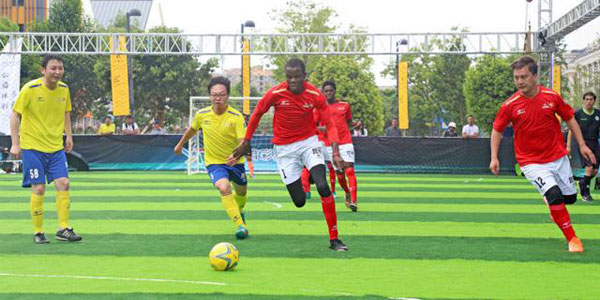 值得一提的是,本次比赛也吸引了不少在昆明居住的外国足球运动爱好者报名参赛。不同肤色、不同语言的运动员们,因“竞彩梦想”结缘球场,为比赛注入了更加丰富、更深层次的内涵。来自马里共和国、现就读于昆明理工大学的萨立夫说:“我们队伍里除了我之外还有法国、马拉维、几内亚的留学生。我们因为相同的爱好相聚。本次比赛给我们提供了与中国足球爱好者交流、沟通的机会。我们都十分开心。不仅认识了很多新朋友,也和许多老朋友再次切磋,希望能够进入总决赛,取得好成绩。”