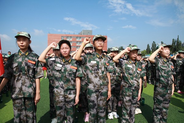 小营员们穿上橄榄绿色的军装,接过励志营营旗,举起拳头庄严宣誓,重温入队誓词,试穿小军装,戴上迷彩帽,结识新伙伴……孩子们新奇、兴奋,纷纷表示实现了自己“当兵”的愿望。