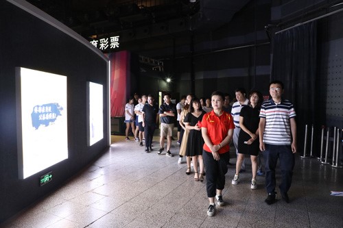 时间很快就来到了7点半,张梦雪和各位来宾在服务大使的引导下进入了本次活动的重头戏所在——全新改造升级后的体彩摇奖大厅。今天的摇奖环节将在这里开启。