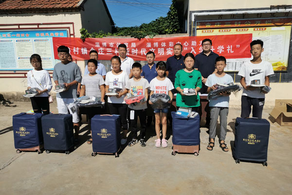 8月29日上午,在莘莘学子即将开学之际,淄博市体育局、体彩中心助力市体育局派驻“第一书记”帮包村沂源县鲁村镇舍庄三村开展新时代文明实践“入学升学礼”活动。