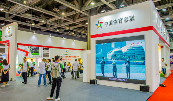 广东体彩的展厅位于保利世贸博览馆3号馆T06展位,展台以白色作为底色,并结合体育彩票、赛事活动等元素,充满活力,在众多展位中显得十分抢眼。广东体彩的展区面积近200平方米,分为体彩展示区、体质监测区、游戏互动区三个区域。