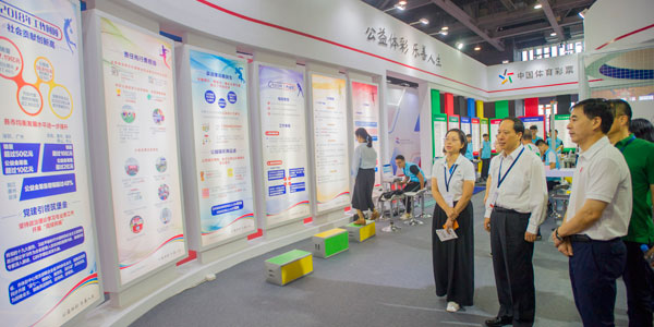 广东体彩展位设置了体育彩票销售台,为市民搭起公益的爱心桥梁。体育彩票公益金的筹集离不开社会购彩者的爱心,以体彩大乐透为例,购彩者每购买1注2元大乐透,就贡献了公益金0.72元。