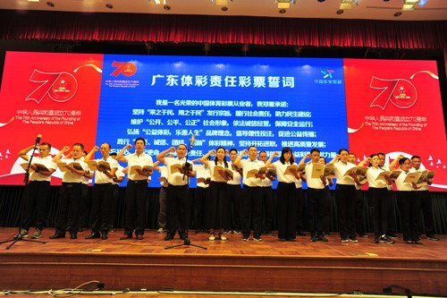 “我是一名光荣的中国体育彩票从业者,我郑重承诺:不忘初心,牢记使命,为建设负责任、可信赖、健康持续发展的国家公益彩票贡献力量!”9月26日,广东体彩发布《中国体育彩票2018年社会责任报告(广东省)》(以下简称《报告》)。发布会现场,400余位体彩从业人员在体彩追梦人薛佛宝的领誓下作出上述庄严宣誓。