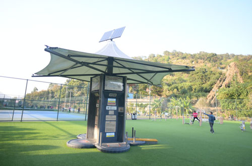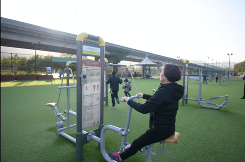 园内除了完备的全民健身设施,还设有一处智能体质测试站。群众可以检测身体的反应能力、心理压力等数据。检查完毕,系统会自动开出“运动处方”,通过蓝牙传输到手机上,随时随地进行视频指导。这些检测数据将被储存起来,作为政府今后在国民体质监测方面的参考数据。