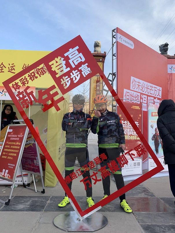 在药王山的登山活动中,铜川体彩代表队举着“中国体育彩票”的旗帜走在人群中间,让大家看到了体育彩票从业者的良好形象,彰显了“责任、诚信、团结、创新”的体彩精神。登顶后,大家陆续在体彩签名墙上留下自己的名字,为新年开个好头,为未来一年许下美好的心愿。两天两场登山活动受到广大群众的欢迎,虽然当日天气严寒,但依然阻止不了大家积极参与健身活动的热情。