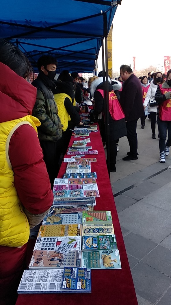 在体彩品牌宣传区内,大家开心地在体彩背景板和拍照区拍照留念,大家积极参与到各类小游戏中,在小型投篮器、和足球球门的游戏前聚拢的人群也越来越多,现场一片欢声笑语。品牌宣传区旁的中国体育彩票即开票销售区也吸引了众人的瞩目,大家一起体验即开型游戏“顶呱刮”即中即兑的乐趣,想借着“顶呱刮”的中奖为新年带来一份美好的祝福。活动现场体彩彩旗飘扬,各式宣传品也是琳琅满目,更加烘托了活动现场的热闹氛围,场面十分喜庆。