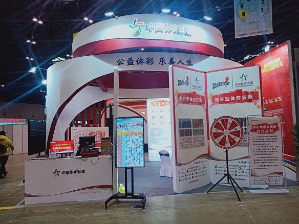 中国体育彩票展区,共分为:展示区、互动区与销售区。展示区共分五个部分,包括:“中国体育彩票 国家公益彩票”,让前来观展的老百姓进一步了解体育彩票资金的构成和透视彩票公益金的分配;“倡导理性购彩 建设责任彩票” 以实际行动践行责任彩票发展理念;“相约体彩看开奖”,邀请公众一同见证体彩开奖,近距离感受体育彩票开奖的公开、公平、公正;“中国彩票发展历史”和“即开型体育彩票展示”细数彩票发展的重要时刻,向公众展示制作精美,种类多样的即开型体育彩票。