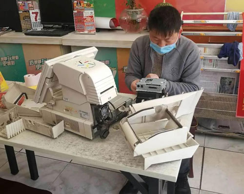 复工首日,大理销售管理部全体工作人员出动,为80余个体彩实体店维护销售终端机,确保各实体店顺利进行销售。