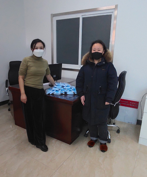 从帮忙摆放防疫物品到指导销售工作,从为代销者讲解防疫措施到为购彩者解释要配合实体店防疫工作,体彩中心的工作人员们一直忙碌着。延吉市体彩第2215015110号实体店代销者黄靓在得知全体中心工作人员都在为实体店代销者服务,并积极宣传防疫的重要性时,非常受感动。13日一早,她特意来到延边州体彩中心,捐赠200个一次性口罩,并代表延边州体彩实体店代销者和销售员感谢延边体彩中心为全州实体店做出的巨大努力。