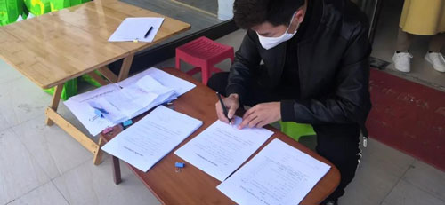 淮北分中心加强办公区域防疫,体彩实体店按要求签订承诺书、领取防疫用品。