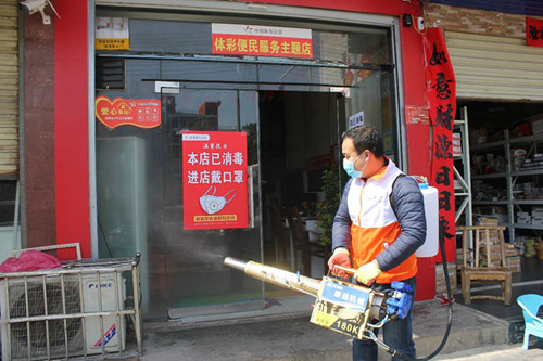 每到一个实体店,分中心工作人员都对实体店代销者和销售人员进行无接触式的培训,讲解“防疫”及实体店日常消杀工作的流程和注意事项,提高对于“复工”后防控工作的持续重视;分中心工作人员还自带设备帮助实体店开展全面的消杀,确保无死角,无漏洞。分中心还提前制作了各类的温馨提示及警示标语,发放给实体店并及时张贴到室内外,接受社会的监督,为购彩者提供一个安全放心的购彩环境,彰显了“责任彩票”的理念。