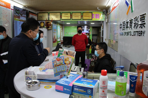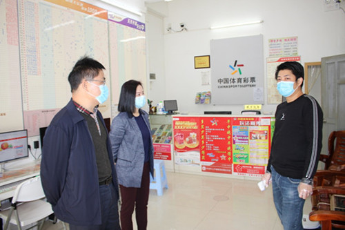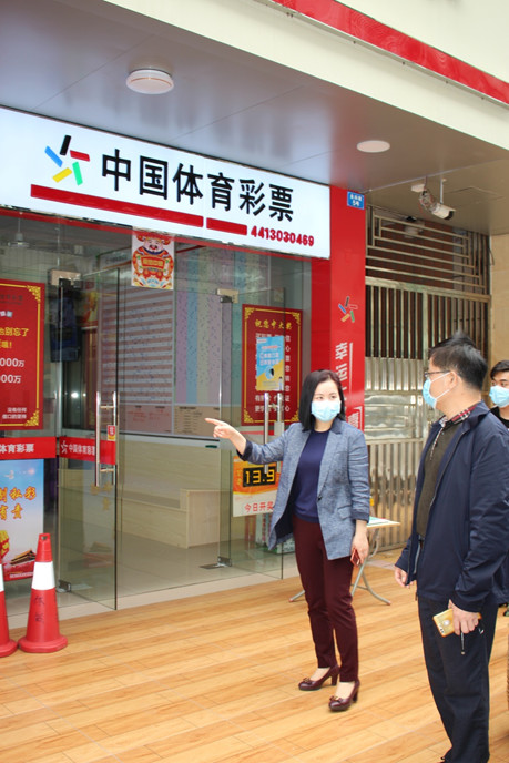 分管副局长陈楚君在体彩开市当日亲临一线来到市城区体育彩票销售实体店,实地了解各体彩实体店复工复产中遇到的困难和问题。并要求各体彩实体店做好销售区域的消毒工作,保证卫生无死角,确保店内通风,引导购彩者在安全范围内排队购彩,减少在实体店内的逗留,做到不聚集、不扎堆,做好每日环境卫生、消毒和消杀记录等工作。