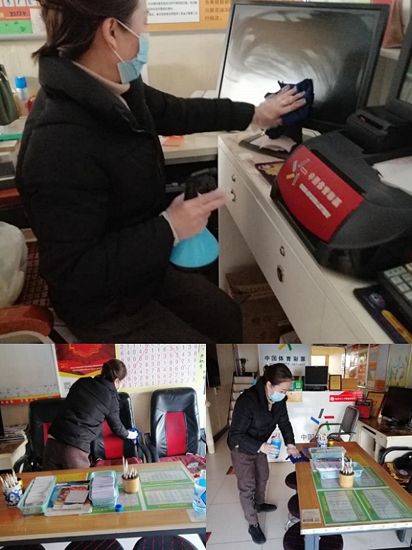 6425080015体彩实体店是固原市第一批恢复销售的实体店。今天一大早,实体店代销者胡祥娜就来到店里,把店里的角角落落都打扫了一遍,并进行了细致的杀菌消毒。她说,我们等这一天等了好久,感谢所有为防疫工作做出贡献的人。