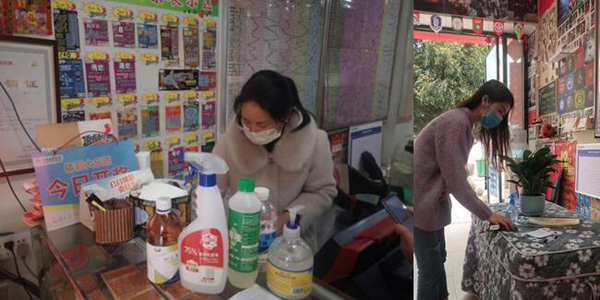 代销者对店内进行消毒杀菌,做好疫情防范
