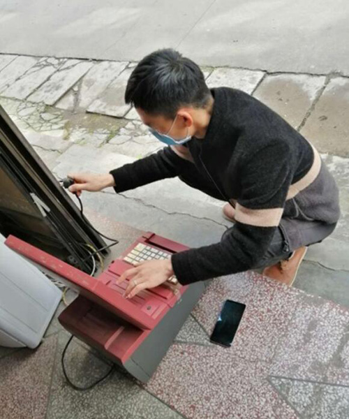工作人员对故障终端机进行检测维修