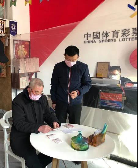 体育局领导十分关心一线销售人员,积极倾听实体店代销者的需求,为体彩实体店送上消毒液和一次性手套等防疫物资。