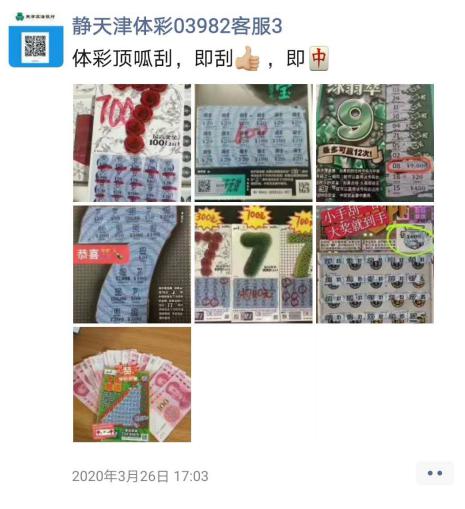 自推行“窗口式“销售后,田勇慧就一直积极的在微信朋友圈宣传。她会选择一些票面精致、喜庆、美观的即开票照片,配上一些讲解的语句发布到微信朋友圈,她津津乐道地说:“发布时间也是有窍门的,比如流量高峰阶段发朋友圈,曝光率会高很多。在中午和晚上,购彩者通过我的微信朋友圈看到这些宣传信息后,就会来刮几张即开票试试运气。