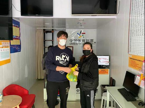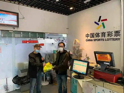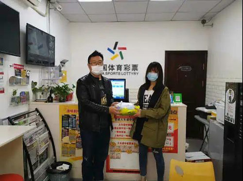 日前,闵行区体彩办开展第二批防疫物资发放工作,专管员在发放物资同时也不忘提醒代销者继续保持实体店防疫工作。
