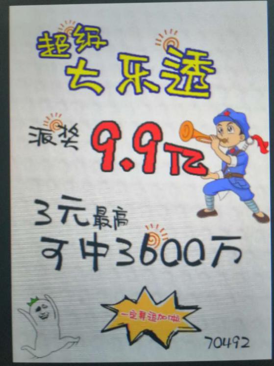 于是,体彩店内、朋友圈里,到处都是这样的宣传:大乐透9.9亿元大派奖来啦;所有奖级都分享,奖金最高可翻倍,3元可中3600万;这是体彩史上力度最强的回馈活动,更是2019年新规则实施以来,全国范围的首次大派奖;亮点多多、惊喜无限!