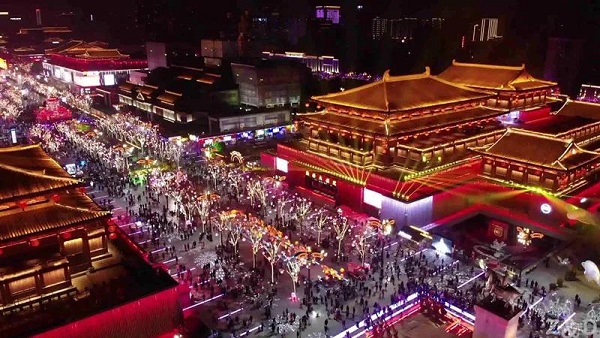 如果问到西安夜生活的集大成,十个老陕九个会告诉你去大唐不夜城。大唐不夜城究竟有多火,前些天国家主席来到陕西,还专门走到这条步行街上视察经济恢复情况,此举已然是将这条“网红”步行街视为了整个西安年轻朝气与潮流时尚的新地标。