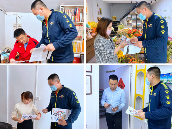 工作人员免费赠送一注体彩大乐透彩票并发放体彩宣传单页给周边商户