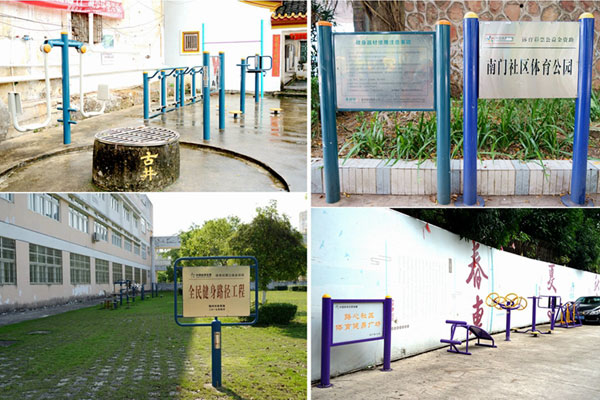 2010年以来,梅州市大力推进农民体育健身工程和全民健身路径工程建设,在体彩公益金的支持下,建设了104个农民体育健身工程、2179个全民健身路径点(共17374件体育健身器材),并为32个基层综合文化服务中心(示范村)配备了体育健身器材。家门口的“全民健身”逐渐成为现实,老百姓在家附近就可以找到适合自己的体育健身器材。目前,全市现有体育场23个,体育馆6个,全民健身广场8个,游泳池17个,社区体育公园47个,足球场817个,全市人均体育场地面积达到1.61平方米。