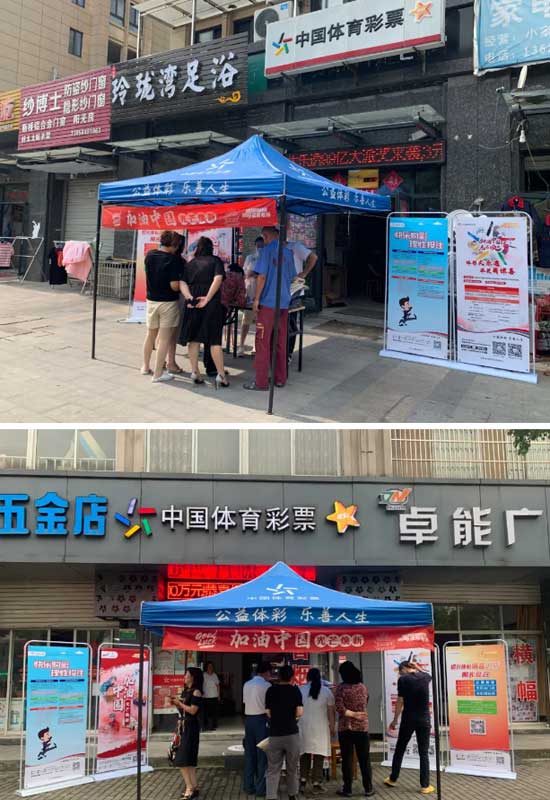 5月18日,新昌县管理站在新昌茶市旁的3306052037体彩实体店门口开展“加油中国,光芒焕新”主题品牌落地活动。活动现场,工作人员和代销者搭起帐篷,立起了公益、阳光征召等宣传展架和横幅,还派发阳光征召折页等宣传资料。工作人员在现场赠送水杯、雨伞、体彩文化衫等丰富的奖品,吸引了不少市民朋友的积极参与,让购彩者着实体验了一把新票锦鲤“顶呱刮”的无穷魅力。