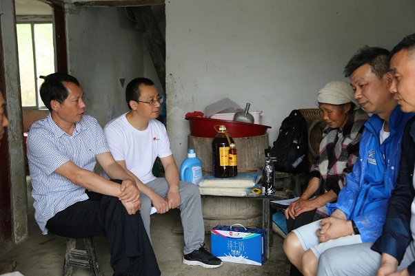 2019年,重庆体彩中心党总支在对王国义、袁时惟、邵瑞洋等三家农户考察后,拟定了捐资助建项目,其中包括帮助三家农户改善住房、学生上学、发展种养殖业、添置生活用品等。为推进各项目的改建和改造落实,中心党总支书记张小波带领党员们到帮扶对象家中进行走访,通过实地查看、促膝详谈,详细询问了帮扶以来他们的家庭情况、经济收入、健康状况,认真了解帮扶项目落实进展情况以及当前面临的困难和需求。张小波鼓励他们一定要树立脱贫致富的信心和决心,同时为农户们送去粮油等物品。