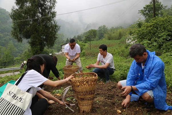 重庆体彩有对口帮扶的农户,近日,体彩党员们再次来到对口帮扶的农户家中,把党日活动办到农民的田间地头,问需求、想办法。党员们深入田间地头,帮助农户采收土豆,并现场收购“土货”,助力消费扶贫。