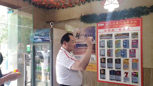 在体彩实体店,许海峰饶有兴致地了解了体育彩票的游戏、实体店的销售情况等。他还兴致勃勃地拿起了实体店配备的“磁性飞镖”,认真地投射起来。最终仅投射3次,就成功为实体店完成一次“点亮”。