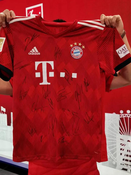 “能进拜仁亚太办公室简直太开心了,能面对面看到那么多拜仁元素,简直像做梦一样!”更让戴一帆高兴的是,他还分别收到了拜仁俱乐部亚太办公室和PP体育赠送的两件签名球衣。“一件是穆勒的签名球衣,一件是拜仁全队的签名球衣,我身边不少球迷朋友都很羡慕我。”