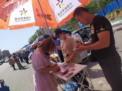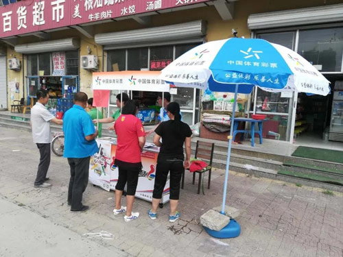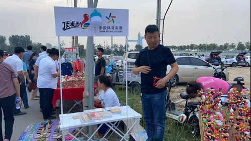 在沧州体彩中心的大力支持下,沧州的体彩代销者也踊跃报名,纷纷加入了地摊销售的队伍中。沧州新华区1309021053101的代销者莫成亮,作为即开地摊销售的先驱者,在沧州市大运河公园开启了自己的地摊事业。他说道“地摊儿销售即开票销量不稳定,但我肯定坚持,不为自己能挣多少钱,为的是给公益体彩做宣传”。